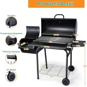 - Stable and Portable Design: Featuring a sturdy 4-leg and convenient wheels for easy mobility, this 18-inch round charcoal grill is designed for stability and portability.