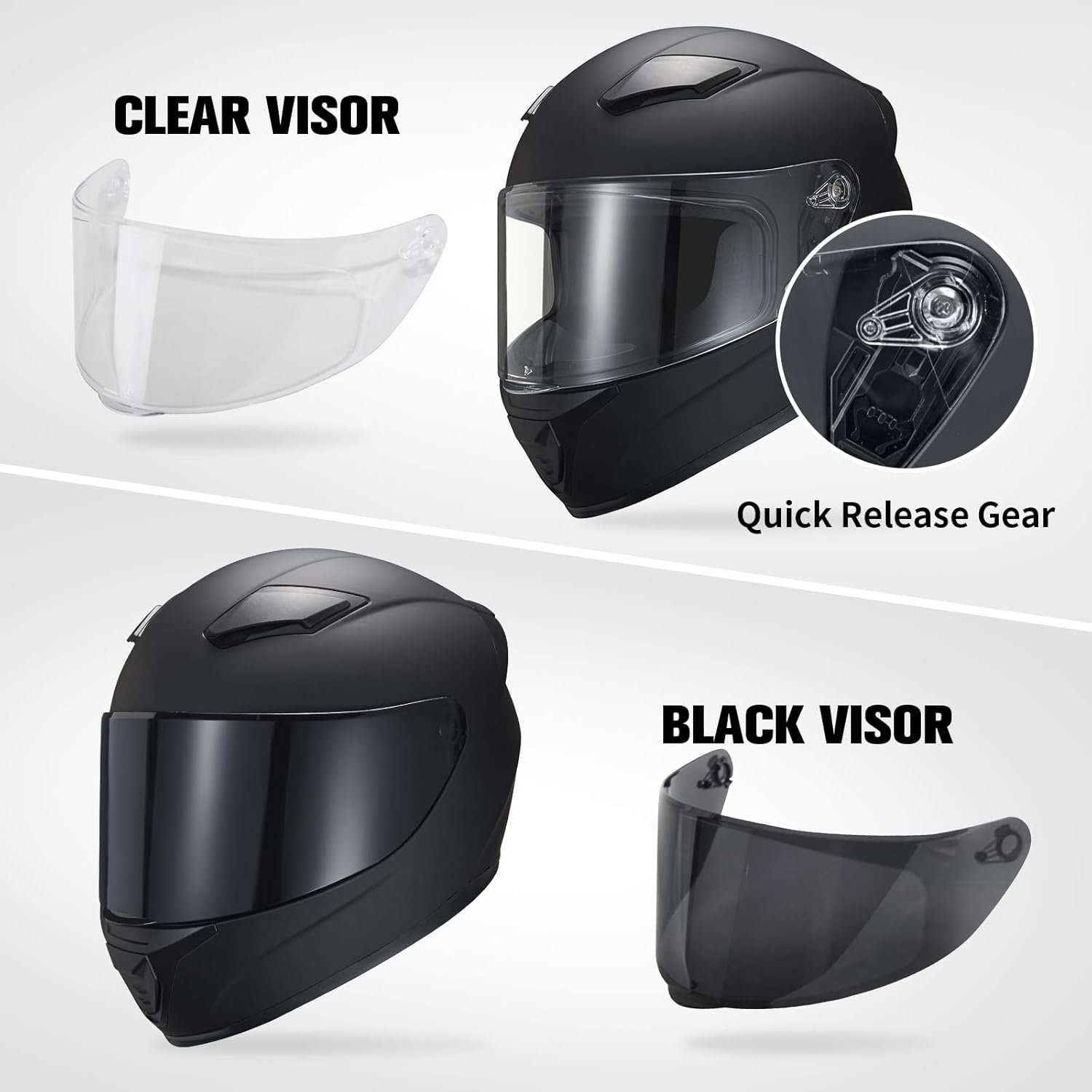 - 【About Visor】We have two visors combinations available. 1. Helmet with clear visor(Gray Ash/ Flat black B/ Flat black W/ Gloss White/ Thor/ Cube). 2. Helmet with clear and black visor(Gray Ash B/ Flat black BB/ Flat black WB/ Gloss White B/ Thor B/ Cube B)