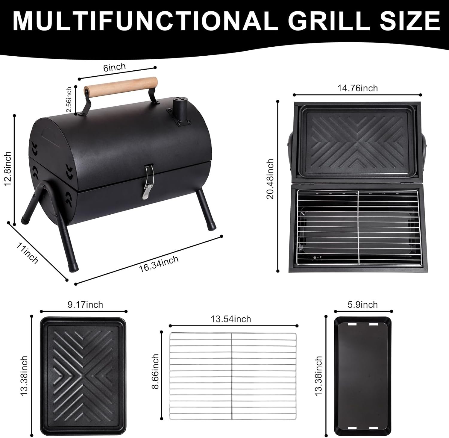 • Compact and versatile: This Portable Charcoal Grill is small, lightweight and ideal for use in a variety of outdoor settings, from picnics and camping trips to backyard cookouts. Its compact size makes it perfect for tabletop grilling or even for use on cramped apartment balconies.