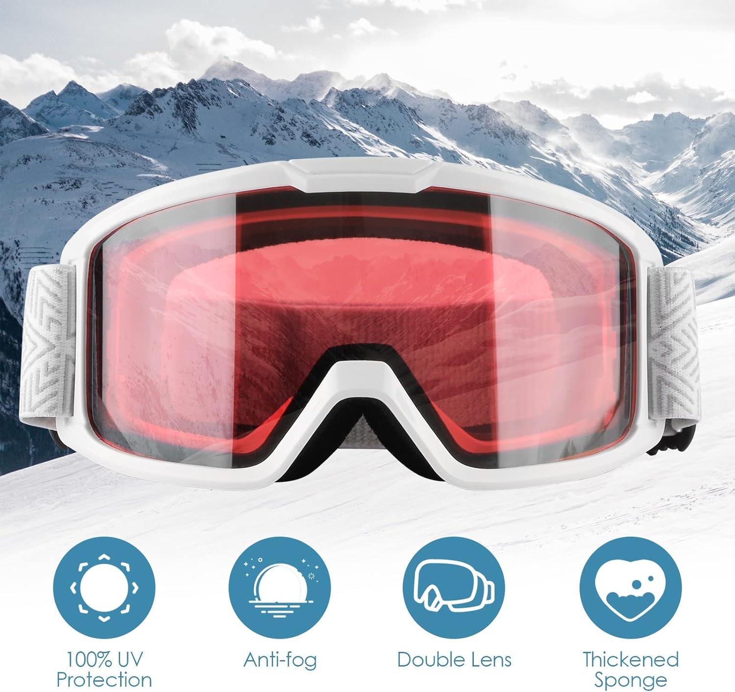 - Good Air Permeability, Super Anti-Fog: Ski goggles with advanced double lens design can form a thermal barrier, can reduce fog phenomenon. The inner lens comes with an anti-fog film and a high-performance hydrophilic coating, which is used in conjunction with a breathable system to prevent fogging while skiing or snowboarding. The outer PC lens is impact-resistant and scratch-resistant to protect your eyes